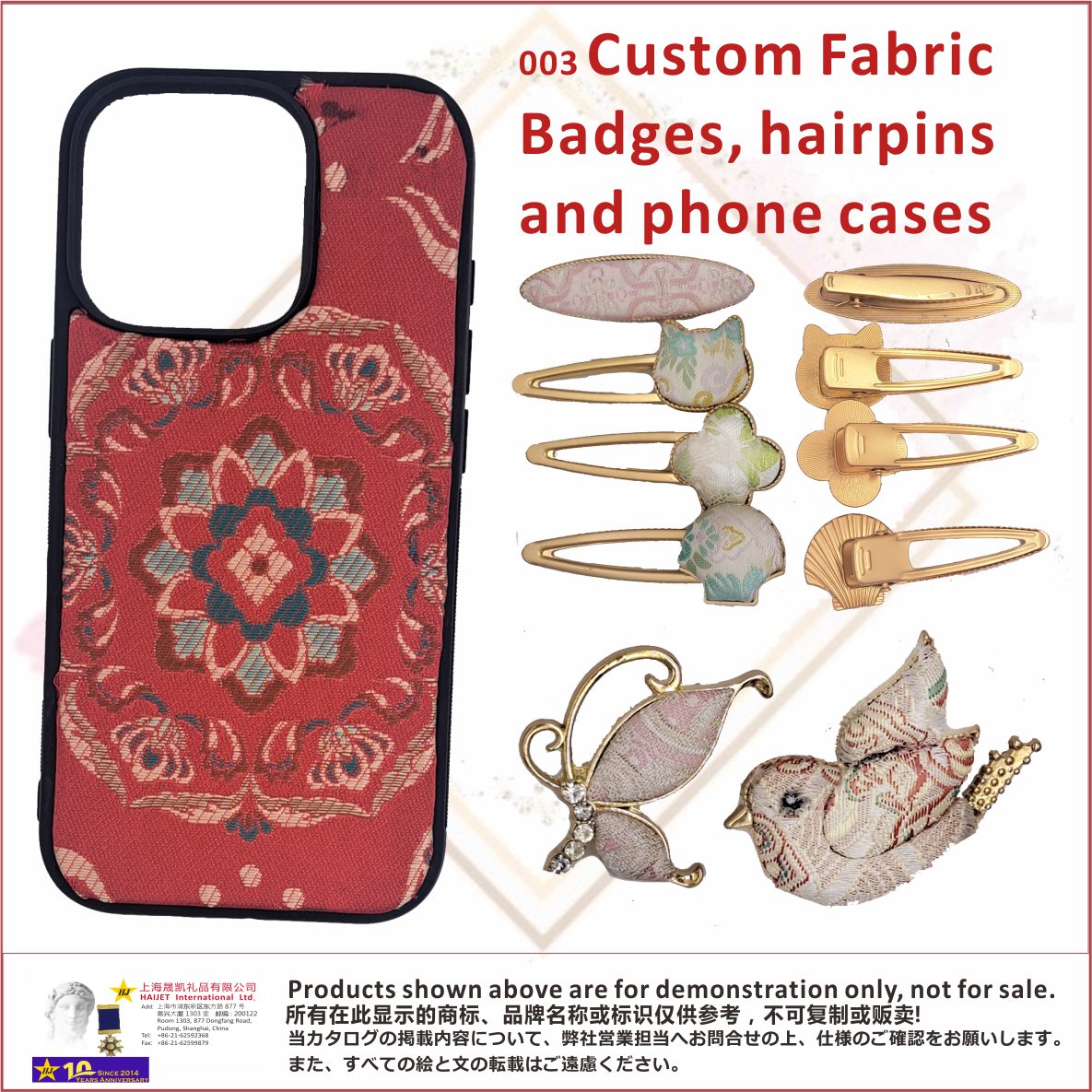 <h1 style="text-align:justify; margin-top:23px; margin-bottom:22px"><span style="font-family:Microsoft YaHei;"><span style="font-size:28px;">003 Custom Fabric Badges, hairpins and phone cases</span></span></h1>