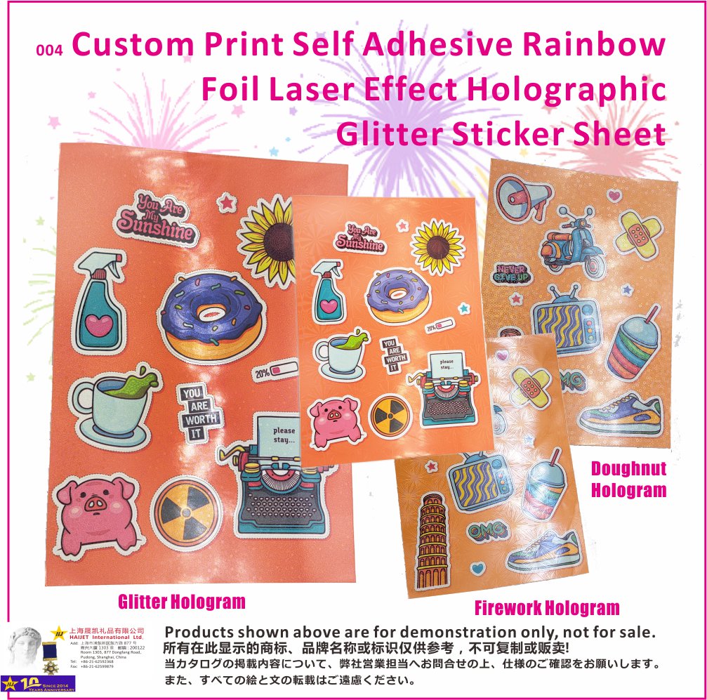 <h1 align="left" style="text-align:left; margin-top:23px; margin-bottom:22px"><span style="font-size:24px;">004 Custom Print Self Adhesive Rainbow Foil Laser Effect Holographic Glitter Sticker Sheet</span></h1>
